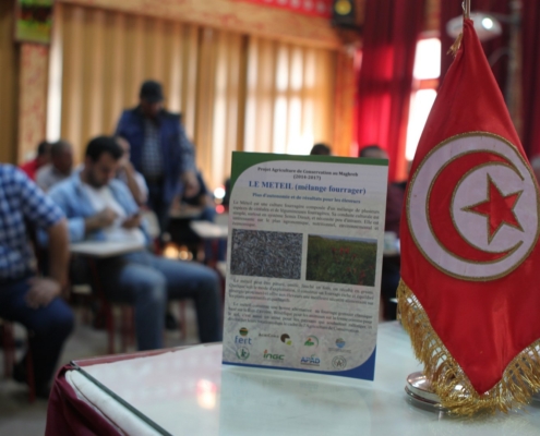 - Deux dépliants techniques ont été édités en arabe et en français ; l’un sur l’approche innovante des couverts végétaux permanents (luzerne) et l’autre sur l’intérêt des méteils (mélanges fourragers) dans les rotations en agriculture de conservation.