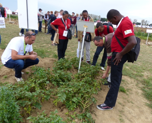 Dédiée à la pomme de terre, et se déroulant chaque année dans un des quatre pays partenaires de l’événement – Allemagne, Belgique, France, Pays-Bas – PotatoEurope était cette année organisé par Arvalis Institut du Végétal à Villers-Saint-Christophe dans l’Aisne. Cyril Hannon, Ingénieur régional Pomme de Terre d’Arvalis, mobilisé par Fert en 2015 pour une mission technique auprès du Ceffel, en était l’un des principaux organisateurs. Plus de 12 000 visiteurs ont fait le déplacement pour une affluence record. Comme les représentants du Ceffel, près de 40 % des visiteurs originaires de 74 pays, étaient venus de loin pour échanger et s’informer sur les dernières innovations dans la filière. Les 14 et 15 septembre, la délégation du Ceffel, constituée de son Président, d’un administrateur mais également de sa directrice et de son responsable de centre d’expérimentation, a ainsi pu participer à ces deux jours de démonstrations et de présentations variées. Ils ont surtout pu échanger avec les experts d’Arvalis – Institut du végétal et ses partenaires sur les innovations en matière de :