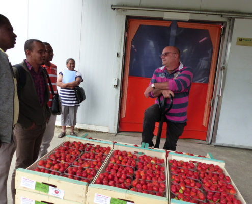 Quittant les régions du nord de la France, la délégation a rejoint ensuite les producteurs du Val de Loire, en commençant par visiter le marché du Cadran de Sologne, qui rassemble aujourd’hui 27 producteurs de fraises et framboises et 7 acheteurs. Créé en 1981, il reste emblématique d’un mode d’organisation multi-acteurs permettant la mise en marché locale de produits agricoles.