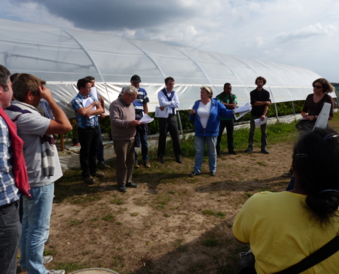 L’après-midi suivante à Angers a été dédiée à la filière biologique en commençant par un repas partagé à la Caba Biocoop, avec une représentante du GAB Anjou et des représentants de l’association Anjou-Madagascar, partenaire du Ceffel pour des prestations de formation à Madagascar. Un moment convivial qui a permis de revenir sur l’organisation des producteurs de la filière biologique et sur leur lien avec les distributeurs, comme le magasin Biocoop. La fin de journée s’est déroulée chez un producteur local en biodynamie, accompagnés par Dominique Soltner, venu en voisin, professeur et auteur connu pour ses ouvrages sur le jardinage et l’agroécologie. Les visiteurs n’ont pu que constater les difficultés inhérentes à cette production exigeante en temps et en main d’œuvre mais aussi partager des pistes de solutions en découvrant les essais réalisés par Mr Soltner dans son jardin ou en évoquant les expérimentations en matière de biopesticides réalisées par le Ceffel à la demande des producteurs malgaches ; des producteurs souvent éloignés des points d’approvisionnement en intrants.