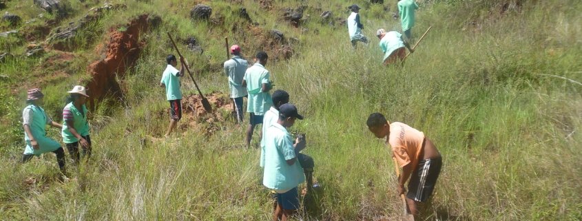 In the Amoron’i Mania region, students from the Ambondromisotra secondary school have joined with another school for a tree planting campaign. 300 eucalyptus and acacia trees were planted. The day ended with a convivial meal prepared, this time, only by the boys of the school.