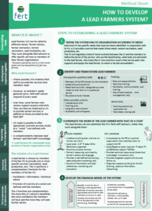 These sheets are the result of the combined experience of Fert teams and FOs partners in the various countries where Fert operates.