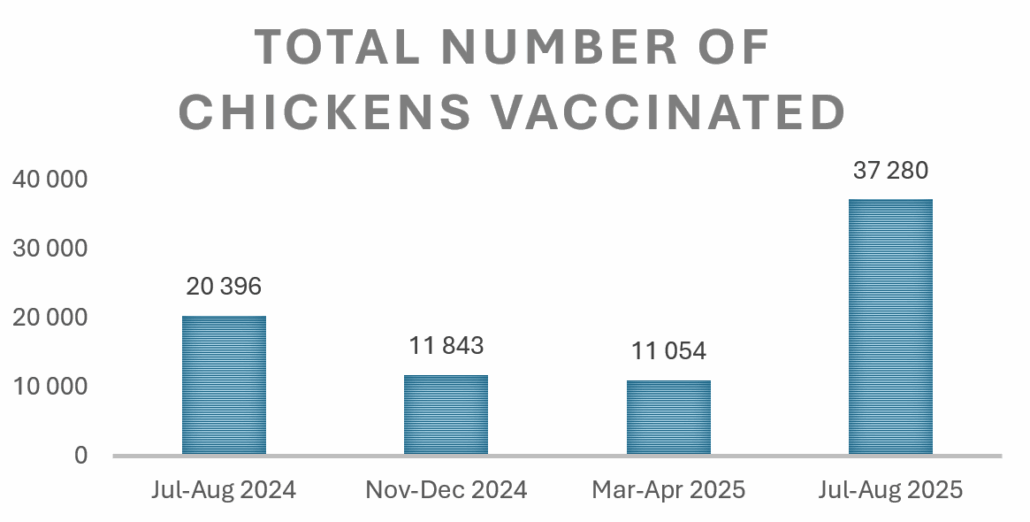 In April 2025, 16 new farmers selected by their respective organizations received the same training and were equipped to begin vaccination during the July-August 2025 campaign.