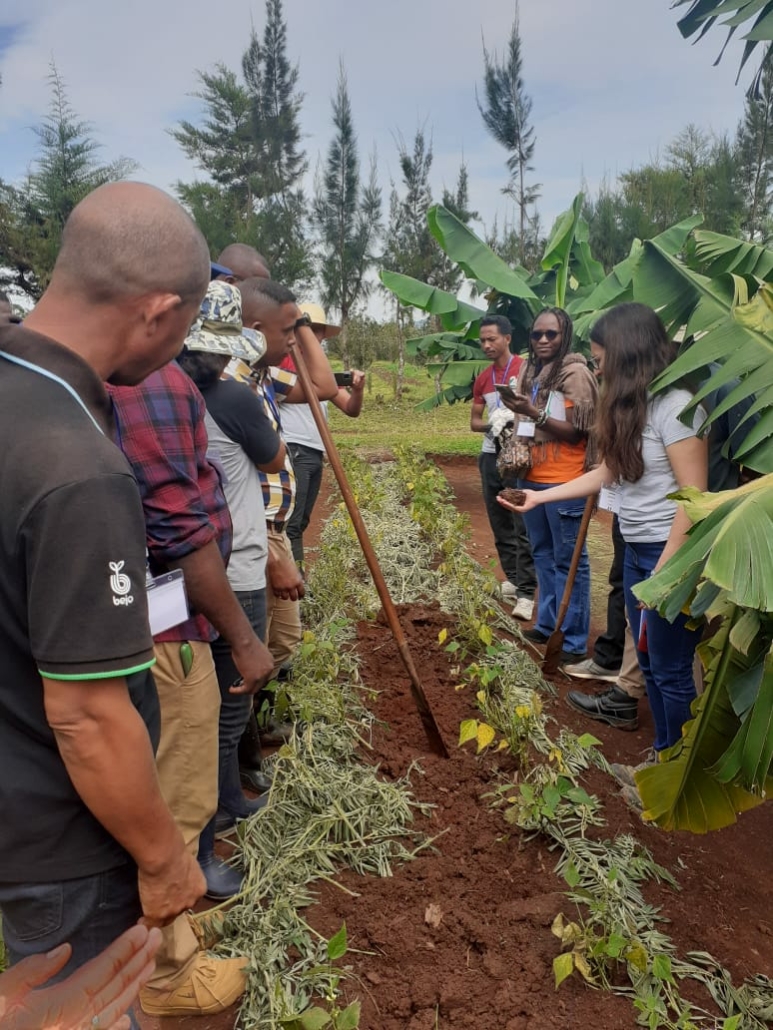 Organisée sur dix jours du 24 février au 06 mars 2025, la formation aux fondamentaux de l’agronomie a réuni 17 personnes de 6 pays (Kenya, Côte d’Ivoire, Burkina Faso, Maroc, Malawi, Madagascar) à Antsirabe, sur les hautes terres de Madagascar. Elle a eu lieu principalement au Ceffel, centre de formation professionnel porté par l’association Ceffel depuis 20 ans et vitrine de l’agroécologie sur les Hautes Terres. Co-animée par Andry RASAMIMANANA, responsable technique Ceffel, et par Delphine BOUTTET Ingénieure Arvalis, la formation a également beaucoup reposé sur le partage d’expériences entre participants.