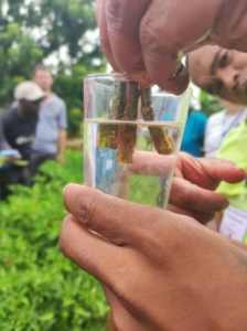 Le point fort de la formation a été de relier les solides apports théoriques à des activités pratiques sur l’exploitation du Ceffel et auprès d’une OP villageoise : diagnostic de sol et de maladies, fabrication de biopesticide selon des recettes propres à chaque pays, multiplication de souche de Rhizobium ou de micro-organismes efficaces (EM), multiplication de semences… le partage d’expériences variées a permis à chacun de progresser et de s’ouvrir à de nouvelles pratiques agroécologiques.