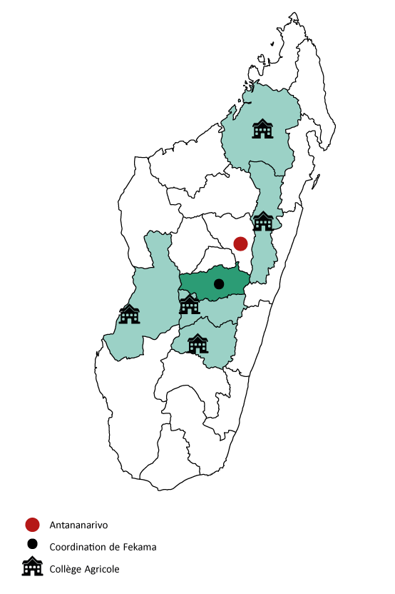 5 collèges agricoles ont été progressivement créés et sont fédérés au sein de Fekama, membre du Groupe Fifata. Ces collèges proposent une formation de 3 ans dont 2 en internat et 1 en alternance, basée majoritairement sur la pratique grâce à une exploitation pédagogique attenante au collège.