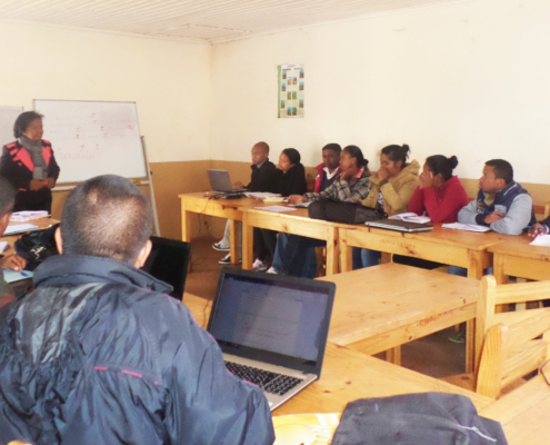 Durant 2 semaines, les équipes, les administrateurs et les jeunes sortants des collèges agricoles ont ainsi pris part à ce désormais rituel regroupement annuel qui a pour objectif de faire le bilan de l’année scolaire passée mais également de préparer la suivante. Mais la spécificité de ce regroupement 2017 résidait dans la variété des intervenants qui ont pu renforcer la compétence des équipes des collèges Fekama : des spécialistes en gestion des ressources humaines, en éducation des adolescents, en renforcement scolaire ou montage de projet, mais aussi des experts en techniques arboricoles et en maraîchage. Les différentes sessions se sont succédées auprès des équipes afin de répondre à leurs besoins de formations.