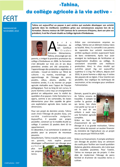A la une (page d'accueil), Actualité Fert, Actualités Madagascar Formation agricole