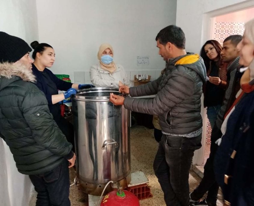 Pour y répondre, un voyage d’étude a été organisé en février 2021. Les agriculteurs se sont rendus dans le nord de la Tunisie (Jendouba, Zaghouan, Sousse) afin de découvrir les expériences d’autres organisations de producteurs qui extraient des huiles essentielles, une pépinière et des commerçants de produits issus des PAM.